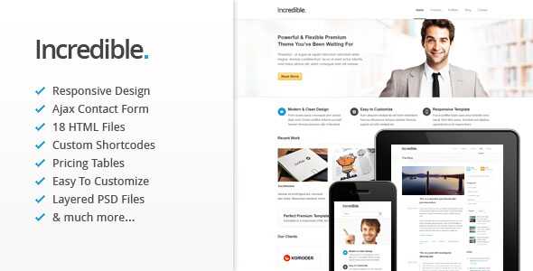 Incredible is a premium responsive HTML template created for corporate and portfolio websites. It features a very clean and minimal design that is perfect for showcasing your work.