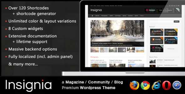 Insignia is a clean and flexible WordPress theme based on a powerfull framework intended for magazine or community style layouts. It may be used for other purposes aswell.