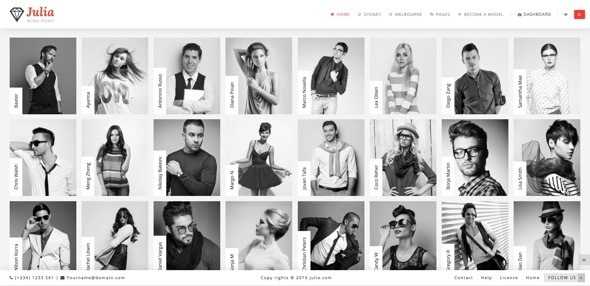 Julia Talent Management WordPress CMS Theme is fully responsive, which uses latest CSS3 & HTML5 techniques and suits perfectly for Fashion Models, Erotic, escort management, talent agency, artist management and Photography Portfolio websites. It is cross browser compatible, uses Google fonts.