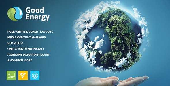 GOOD Energy – fresh & stylish Multi-purpose Ecology WordPress theme. It is designed for any eco related business (as well as non-profit eco organization). Also it fits any recycling business, alternative energy sources distribution company, environment preservation agency, fundraising bureau, organic & biology related firm websites, scientific research or social campaigns etc.