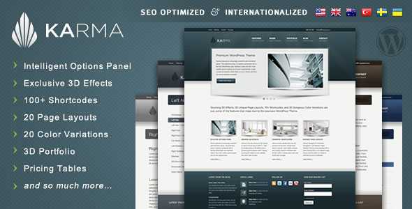 Karma is a Premium Wordpress Theme built on a highly intelligent framework. It’s the only theme on Themeforest to feature the amazing new CU3ER v1 3D slider. Whether your a wordpress pro or just a beginner, you’ll have absolutely no problems at all working with this theme.