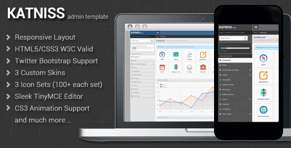 Katniss Responsive Admin Template is a unique animated admin template using css3 with many features, plugins and custom elements that you can use fo your backend projects. This template has 3 different skins hat you can change anytime you want. This template also very useful for any type of application.