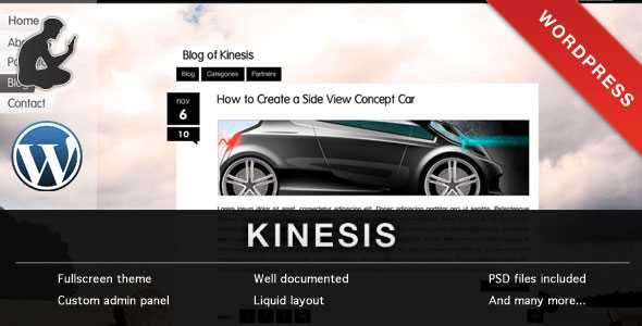 KINESIS is a liquid WORDPRESS theme for photographers, wedsigners and other creative company’s in mind. This site will always putt your content at the center of each visitors mind It has a very clean layout and is created to be easily adjusted to your needs. This Wordpress theme featured a full options panel, watch the screenshots for an overall overview off the theme options panel.