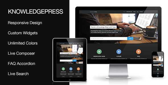 Live Knowledge Base Search Enable fast knowledge base live search in header and on home page.Search in post titles and post content. FAQ Posts Add accordion style FAQs to your site with ability to create multiple FAQ pages. Comes bundled as a plugin. Custom Widgets We have added 4 custom widgets: Twitter, Contact Info, Recent Posts and Popular Posts.