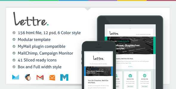 Lettre is a modular responsive email template, come with 2 layout style(Box and Full). A separate divider line can make modules more variety by divide sections of your content. Modular template; you can easily realign module by copy/paste/delete all the code are comment by section so you can easily navigate and make change by yourself.