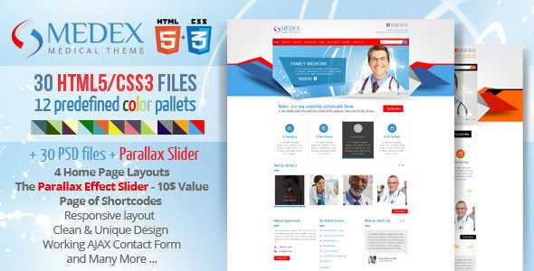 Medex is the awesome pixel-perfect responsive HTML5/CSS3 template based on Twitter Bootstrap Grid System. This is a modern and unique template, which will ideally be suitable for any sites related to medicine, clinics, doctors, dental clinics and any other sites related to medical topics or health care.