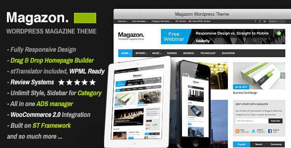 Magazon is an Advanced – Responsive WordPress News or Magazine theme. It is ready to start working out of the box with a multitude of theme options, smart homepage builder, custom widgets, category styler to help you personalize your environment.