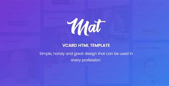 Mat is a new personal vcard template for everyone. Doctors, models, musicians, realtors, photographers, Graphic designers, freelancers or any kind of creative is now able to create a quick and easy portfolio to showcase their work with a distinctive and professional.