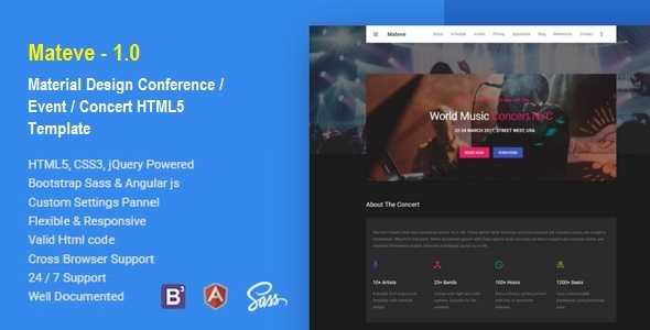 - Item name : Mateve - Material Design Event / Conference / Concert HTML Template