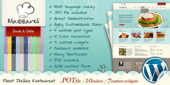 Mazzareli is a beautifully designed WordPress theme for your cafe or restaurant. It is well organized looking theme for your culinary business, foodies, recipes, etc.