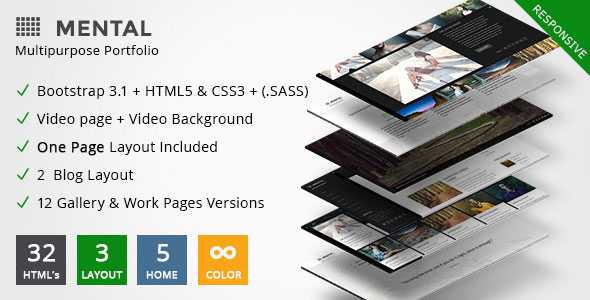 Mental is a responsive and multipurpose portfolio theme with Twitter Bootstrap 3.1.1 Framework and valid HTML5 code. You can use it for: agency, personal portfolio, architect agency, architecture portfolio, photography studios, creative agency, design studios, painter portfolio, model agency, escort agency, products showcase, artworks, art, artist portfolio, web design works, illustrators, projects, blog, freelance designer etc.