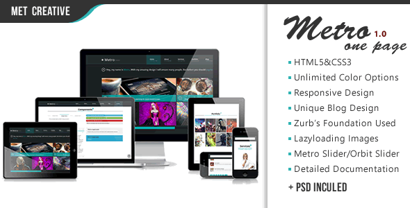 - Item name : Metro One Page | Themeforest Responsive HTML