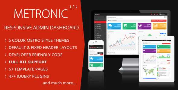 Metronic is a responsive admin dashboard template powered with Twitter Bootstrap Framework for admin and backend applications. Metronic has a clean and intuitive metro style design which makes your next project look awesome and yet user friendly. Metronic comes with a huge collection of plugins and UI components and it works in all major web browsers, tablets and phones.
