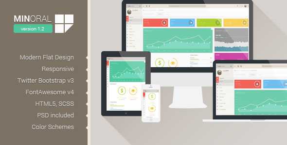 Minoral is premium flat admin theme builded on popular twitter bootstrap v3. Minoral is fully based on HTML5 + SCSS standards. Is fully responsive and clean on every device.