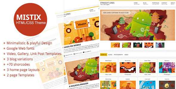 Mistix is a playful and creative minimal portfolio HTML / CSS Theme, suited for creative folk that wish to present their products in a cheerful manner. It is suited for both personal and corporate websites.