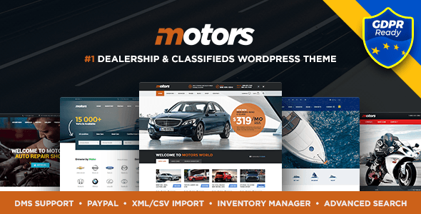 Motors is the best WordPress theme for Car Dealership business. Using Motors you can easily create a modern website with attractive inventory and start promoting your services. This is the perfect theme for Car Dealer, Auto Dealer, Automotive WordPress website and any other automotive dealership business, who sell, buy or lease vehicles via website.