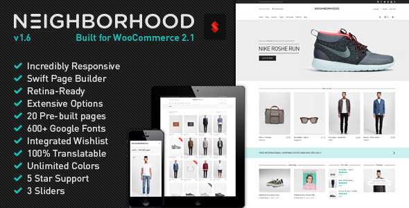 Neighborhood is super responsive, retina ready, and built upon the 1170px Twitter Bootstrap framework. Featuring a clean, modern, and superbly slick design, packed with the most powerful Swift Framework which offers limitless possibilities. The incredible Swift Page Builder is at the core of our framework, giving you the control to create sites that do your content justice. We’ve built in some incredible features such as the super search, full WooCommerce support, and so much more. If you’re looking to build any kind of website, then Neighborhood is what you need.