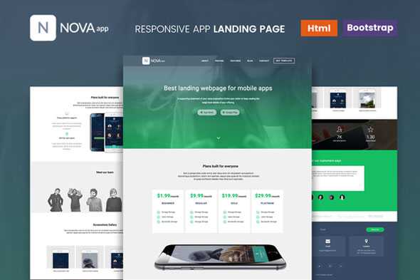 Nova - Responsive App Landing Page Fully responsive Bootstrap template Modern style and design Compatible with major modern browsers HTML Landing Page Template Easy to work with