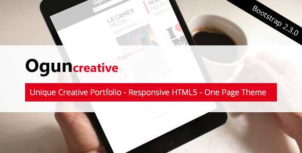 Ogun is a highly unique & creative one-page theme perfect for a design agency / individual creative portfolio website. Ogun is completely responsive built with Bootstrap 2.3.0. This one-page theme is very easy to use and customize, moreover we have included a very high quality PDF user-guide within the pack. Highly unique landing page featuring a Project Showcase built with draggable carousel also supports Touch Swipe interaction!