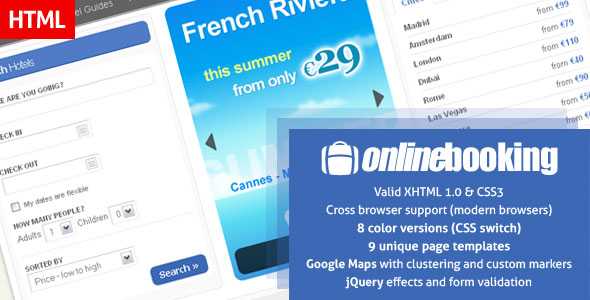 Designed primarily for sites taking bookings and reservations for hotels, bed and breakfasts, guest houses, villas, etc. Ideal for any site in the online hotel reservation industry!