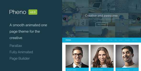 Pheno is the ultimate creative parallax theme for the creative customer. You can create your page in unlimited ways with our smooth animations, infographics, and unique looking pages.