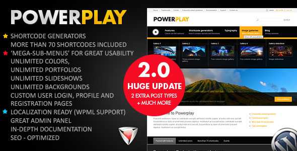 Powerplay is a multipurpose theme packed with smart features. 6 custom post types, many custom widgets and more than 70 shortcodes, makes this one of the.