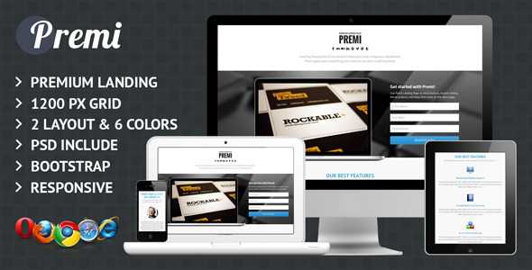 Premi is premium business landing page template that built with very cool responsive template with cool design, clean template, elegant color and a slew of features. This landing page completed with 2 layouts and 6 colors option that you can choose your own.