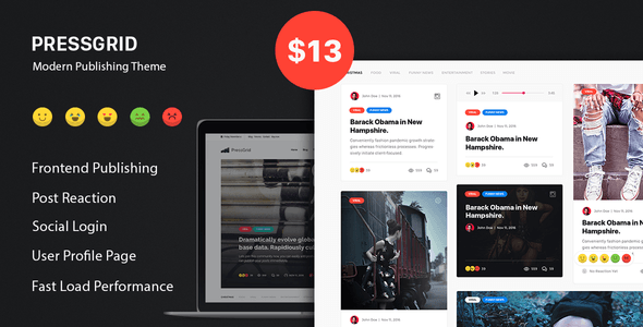 - Item name : PressGrid v1.1 - Frontend Publish Reaction & Multimedia Theme