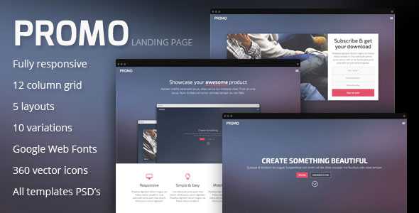 PROMO is a responsive landing page template ideal for companies that offer products or services. It can be used to promote your company, product, accommodation, real estate, event, ebook or app.