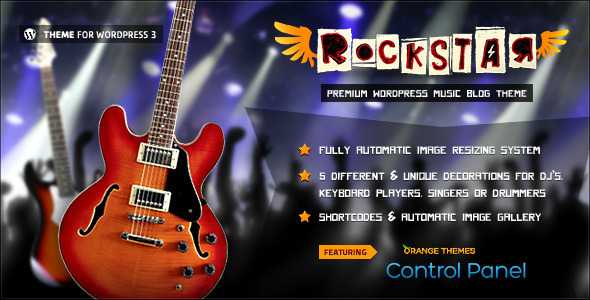 Rockstar is Premium Wordpress Theme, that will work either for music blog page or as your music portfolio page.If you are a musician, or you want to write a blog about the music, Rockstar is the theme just for you! Rockstar supports, one blog style, 2 gallery styles (Default Gallery and Fancybox Gallery), Pop-up banner (you will be able to add video, screenshot, text or html code in it) and mp3 Music Player.