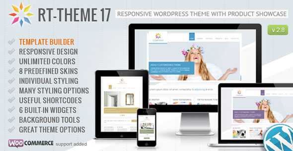 RT-Theme 17 is a premium WordPress theme with powerful CMS tools. You can use it for business, corporate, product catalog, services or portfolio web sites. The product and portfolio tools also give you wide opportunities to use in various services as tour itineraries, rent a car, real estate, hotel presentations and much more.