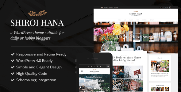 Shiroi Hana is a WordPress theme build especially for daily or hobby bloggers who love to share their stuff, whether it’s about life, fashion, travel, or just a simple personal blog. Featuring a clean, elegant and typography focused design, Shiroi Hana is guaranteed to bring a pleasant reading experience to your readers.