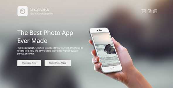 Snapview is an Mobile App Landing Page HTML Template. Features Awesome Design Click-Edit Easily Google Fonts Flat Design