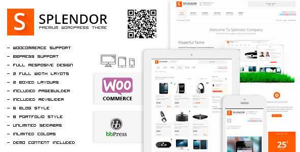 Powerful WP Theme designed in a clean and minimalistic style. This theme is very flexible, easy for customizing and well documented, approaches for personal and professional use. SPLENDOR has been coded in HTML5 & CSS3 and jQuery. It has a solid flexible responsive layout that scales from 320px to 1260px width all Bootstrap features.