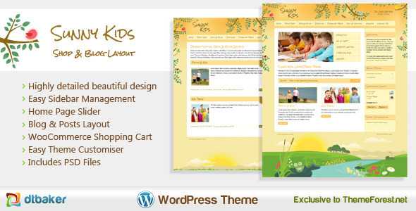 Sunny Kids is a Premium WordPress theme that is easy to setup and comes with a great bunch of features. Perfect for a childrens, kids, family, creative or art themed website. Sunny Kids can also be used with the professional WooCommerce e-Commerce system if you are planning on selling products.