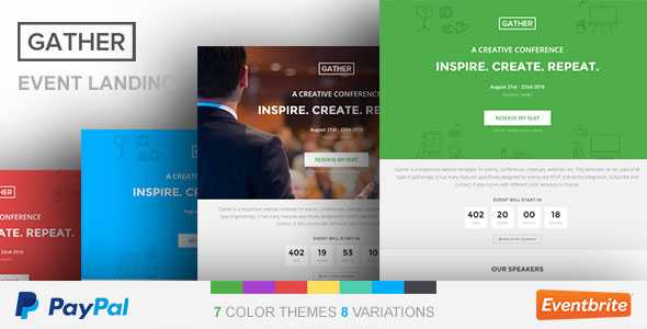 Gather is a Responsive Event, Meetup and Conference Wordpres Landing Page Theme with Working Paypal Integration, Eventbrite Integration and Mailchimp Integration. You can make a complete event related website and go live faster. This theme includes all features for an Event Website. Its carefully crafted to suit any kind of events. With its Award Winning design and Conversion principles, It becomes the no-brainer theme for events.