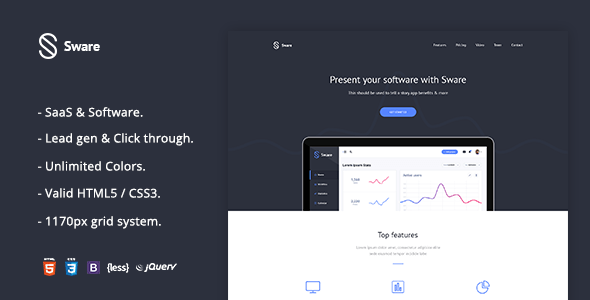 - Item name : Sware SaaS & Software Landing HTML5 Page Template