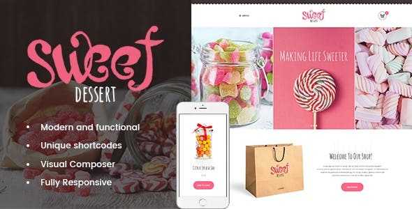 Sweet Dessert is a modern, responsive, sharp and colorful WordPress Theme designed for sweet shop firm, bakery, food or beverage company, catering agency, or other similar businesses. Also the template is a perfect solution for delivery services or any kind of cafe or corporate restaurant.
