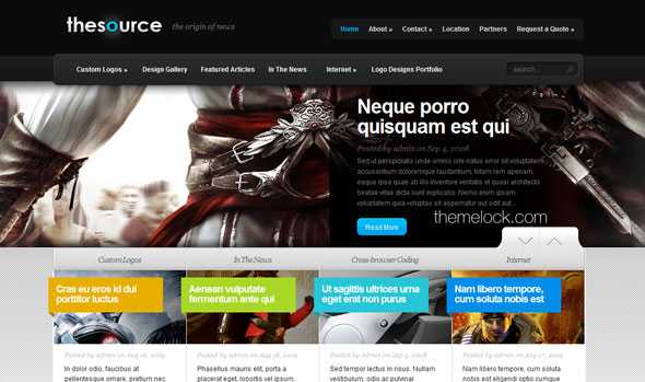 TheSource is a Magazine-style theme that combines flashiness with sophistication. The goal behind this theme was to create a design that could display loads of content in an organized and visually pleasing manner. The three-column grid gives you increased control over your layout, and the full-width homepage slider creates a visual impact that is sure to pique your visitor's interest.