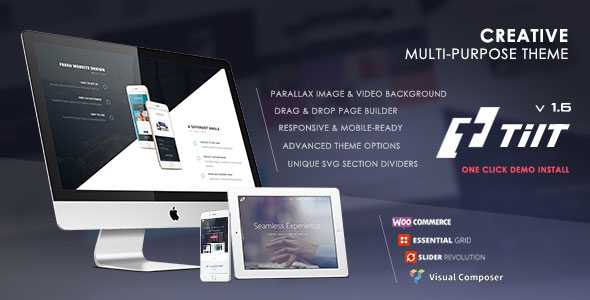 Tilt is a powerful multipurpose theme suitable for corporate and personal business homepages, creative portfolio showoffs, blogs, e-commerce and product & service presentations.