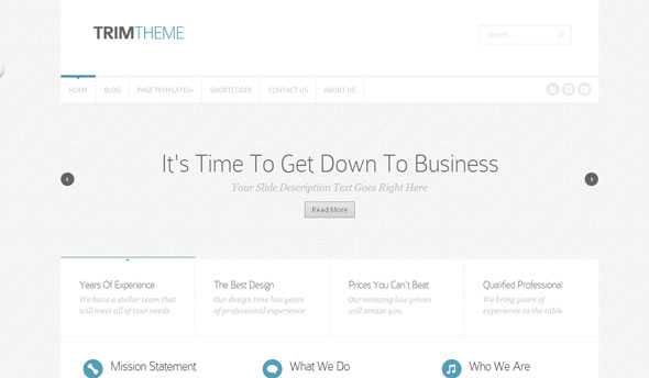 Trim is simple, professional, versatile and fast. We have had a lot of requests for a less stylistic, lightweight design, and that is exactly what we created. Trim might be simple, but with that simplicity comes a sense of balance and crispness that is quite refreshing. Coupled with a bunch of great features, Trim is a great theme that will prove useful for a variety of different websites.