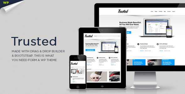 Trusted is a responsive WordPress Theme (try resizing your browser), suited for business websites and users who want to showcase their work on a neat portfolio site. The Theme is built with Themeple Framework V2 with a lot of new options and Page Builder V2 with drag and drop and resizable blocks.