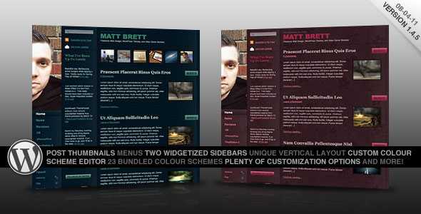 Varnish is quite possibly the most customizable WordPress theme on the planet. Choose one of the 23 bundled colour schemes, or create your own – all from WP-Admin! This theme is geared towards the blogger who likes to share their life and themselves with the world.