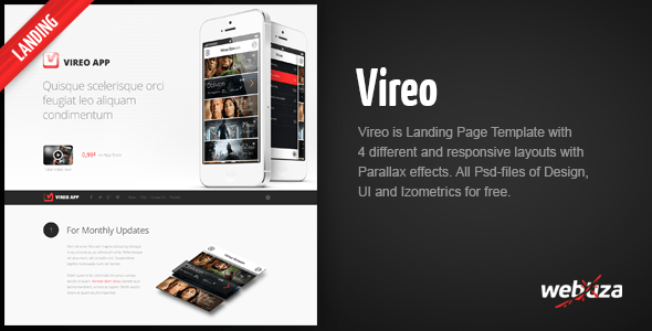 Vireo is a Landing Page Template for application developers. Template have Ultra Responsive layouts with Parallax effects. Besides Landing page Design we have created a user interface design and isometric views. All of these things are available to you absolutely free and with layered PSD-files.