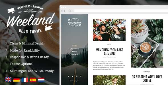 Weeland is a stylish, elegant and minimal WordPress theme designed for personal blogs. This theme perfect choice for lifestyle, cooking, travel, fashion, art, photography and any other kind of amazing blogs.