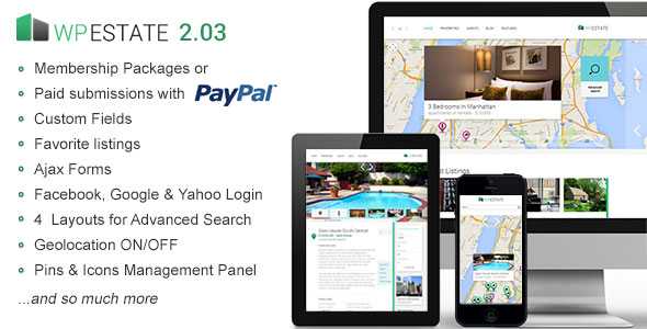 WP Estate is a Real Estate premium WordPress template. The theme is designed for Real Estate independent agents and agencies, but you can also use it to build your own real estate portal and allow users to submit properties for free or for a fee.
