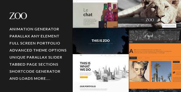 Zoo is the ultimate single page parallax theme. Perfect for corporate, agencies, freelancers or small business. Any element can be parallaxed with zoo, using the powerful animation shortcode generator. Animations are not only limited to parallax effects, you can create all kinds of custom scrolling animations with ease.